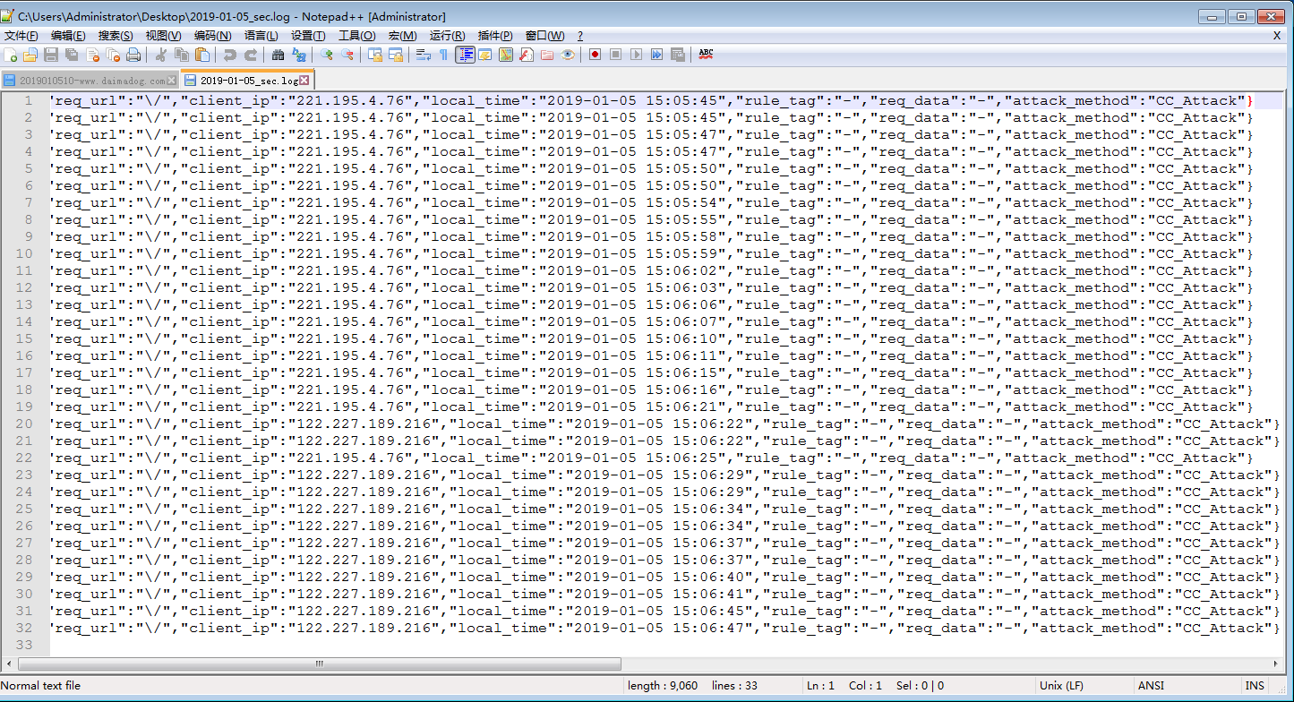 图中我们可以看到拦截了一批CC攻击,但是仍然有一批透过了防御。