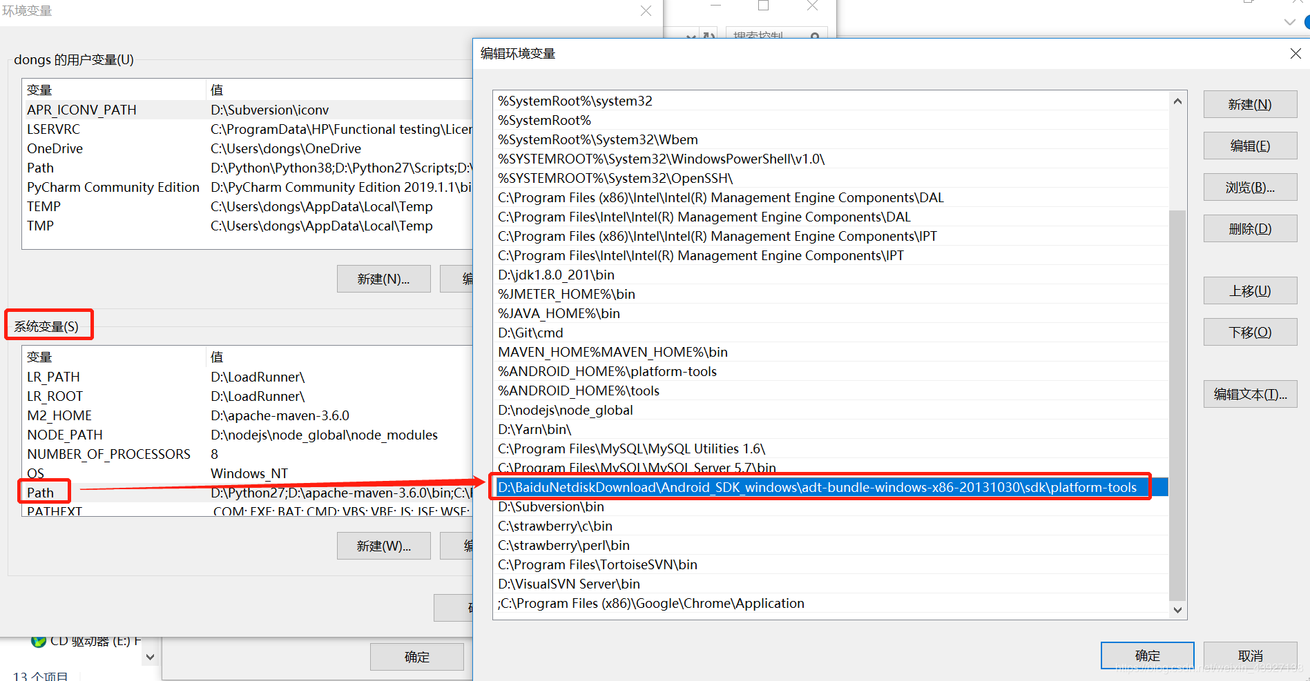 - 如果已安装了Android Studio,它本身带有adb命令,如果配置好的Android Studio 一般都是可以直接调用adb命令的;如果不行,找到adb在SDK里的绝对路径,放入环境变量path中(绝对路径不带入adb.exe)