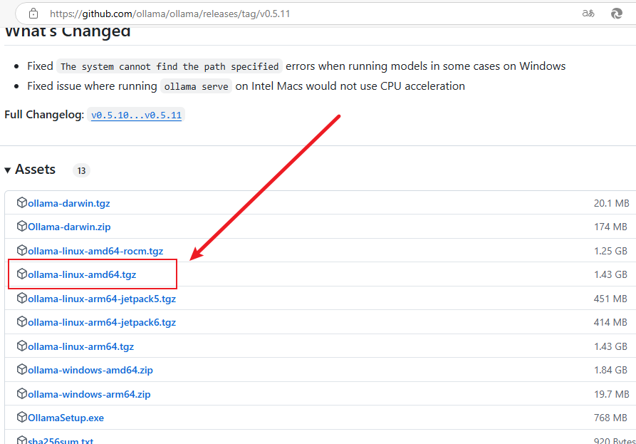ollama-linux-amd64.tgz。https://github.com/ollama/ollama/releases/tag/v0.5.11