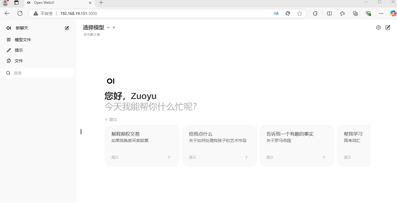 3ed2c82ddd8a open-webui:main "bash start.sh" 8 seconds ago Up 6 seconds 0.0.0.0:3000->8080/tcp, :::3000->8080/tcp open-webui