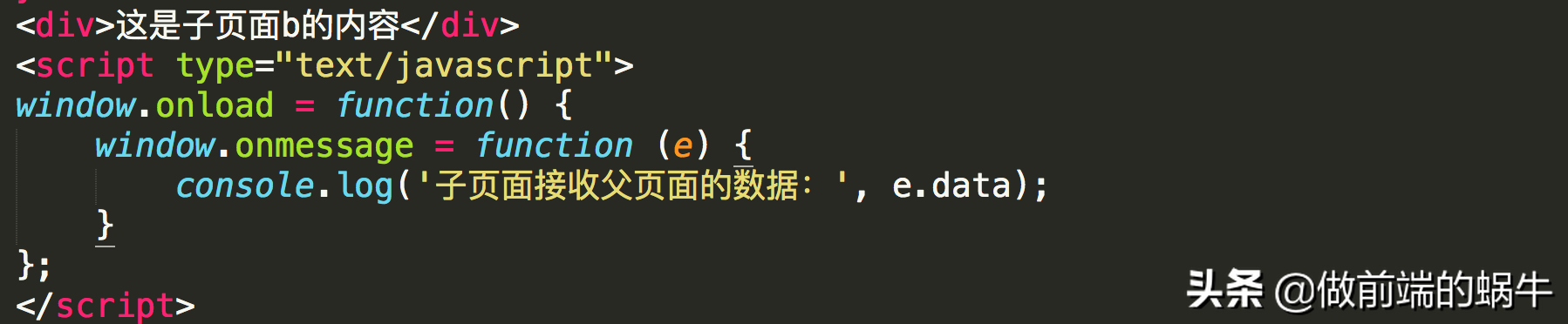 targetWidw.postMessage 发送消息,window.onmessage 监听接收消息。