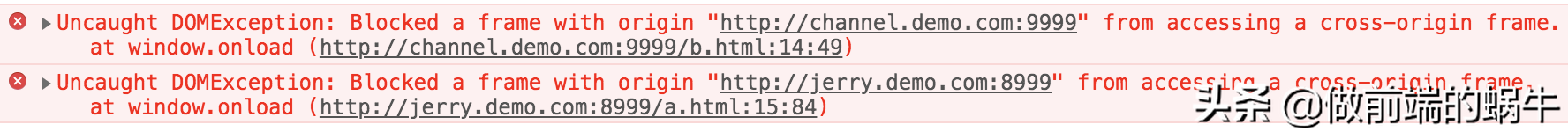 如果父子页面直接操作对方,就会产生图3中的跨域报错!